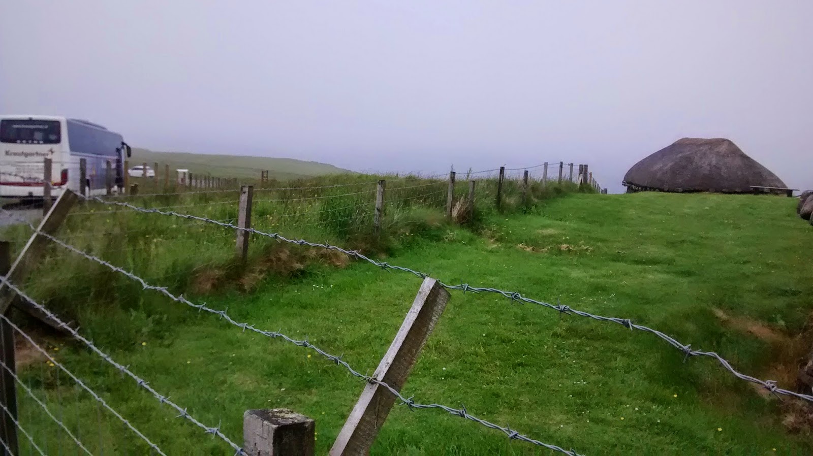 But the crucial difference today was the weather. Whatever and wherever we had yesterday, today it was the opposite. And while we enjoyed some sunshine and warmth while on the move, the mist and chill rolled in from the sea just exactly when we got off our bikes for a little sightseeing. Its timing could not have been worse. While I had taken arm and knee warmers and wore a somewhat-weather-resistant gillet, Adam (who to be fair does not feel weather fluctuations as I do) was in shorts and a short-sleeved jersey and opted to leave his jacket in our room. So in a reverse of fortunes, he suffered while I... not so much. Unfortunately, his discomfort forced us to cut short our visit to the Skye Museum of Island Life and we opted not to walk up the hill to the Kilmuir Cemetary (and Flora Macdonald's grave) at all.
